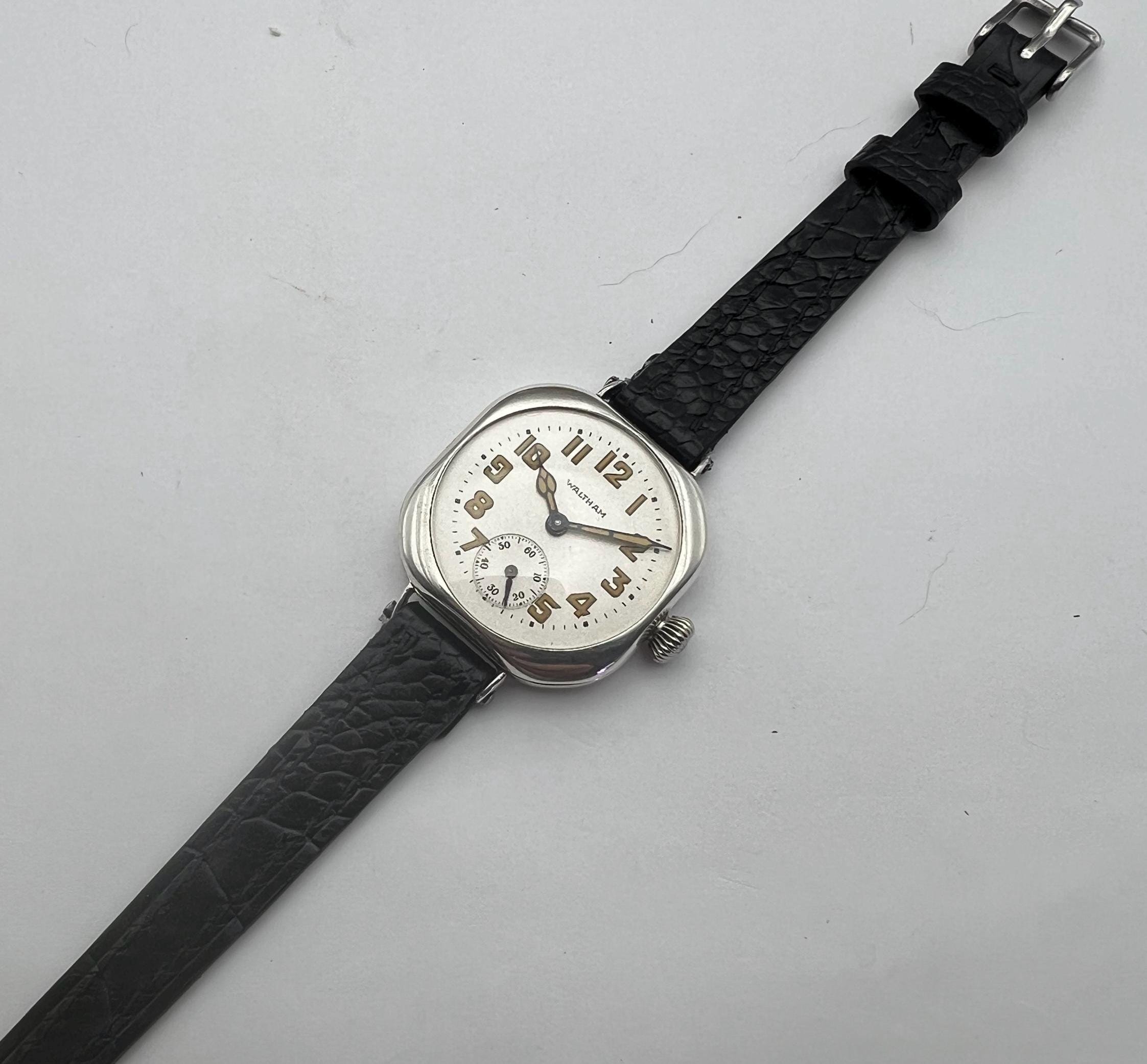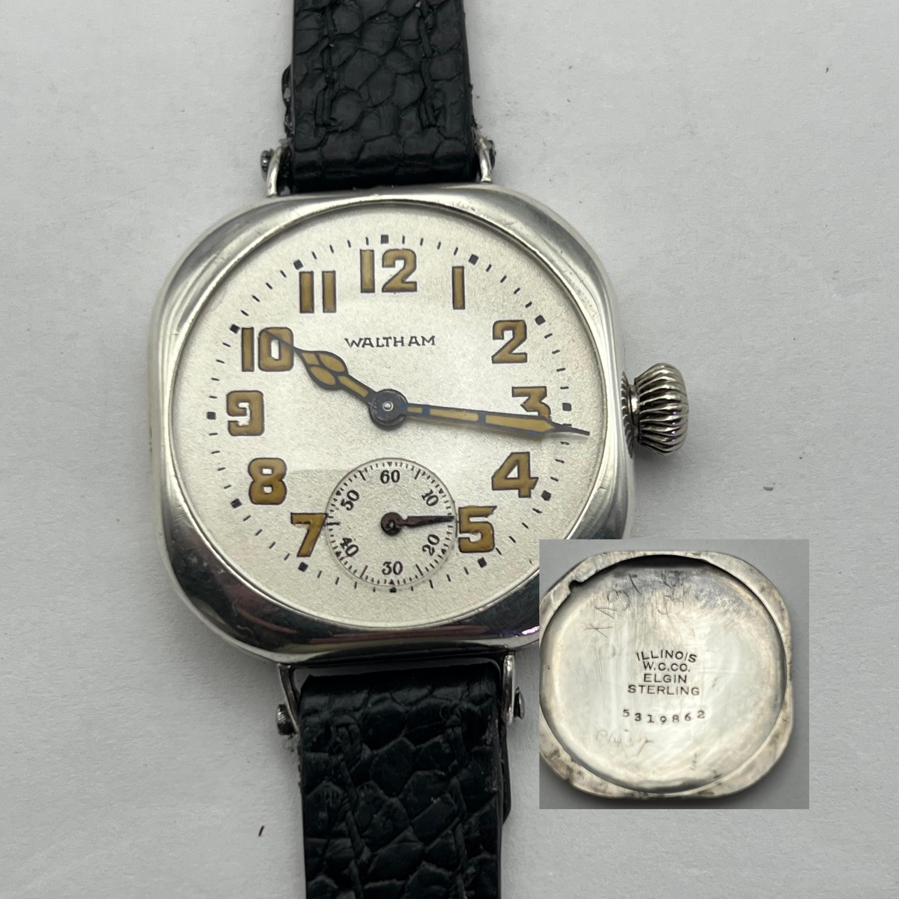 Discover a timepiece that carries nearly a century of American craftsmanship, military-era design heritage, and sterling-silver elegance. This 1920s Waltham “General Benson” watch—housing movement #21515468—is paired with a rare Elgin-stamped sterling silver case, creating a historically compelling and visually stunning wristwatch perfect for collectors and for anyone searching for a meaningful generational gift.